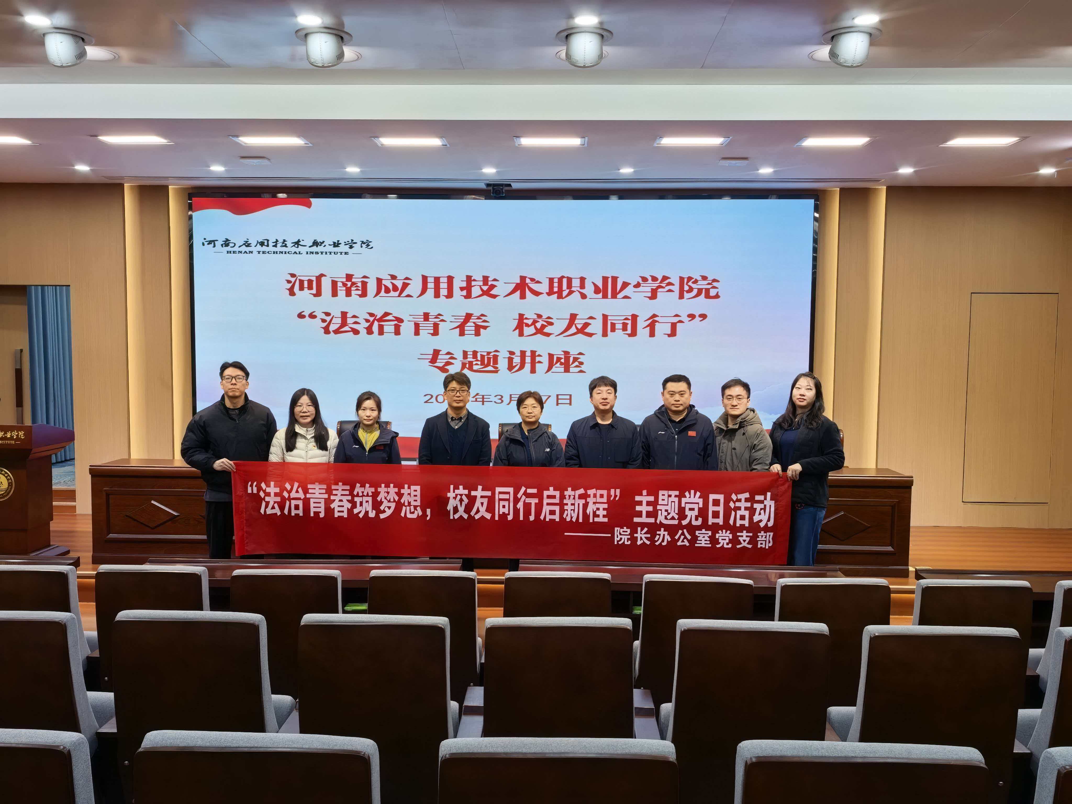 春潮涌动处,法治正扬帆。值此学校建校七十周年之际,为深入落实高校法治教育责任,筑牢青年学生法治信仰根基,3月17日,院长办公室党支部开展了“法治青春筑梦想,校友同行启新程”主题党日活动。
